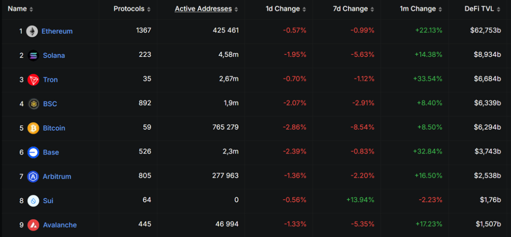 Согласно сервису, первая сеть занимает шестое место по TVL ($3,74 млрд), конкурент — второе ($8,93 млрд).