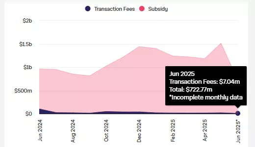 С начала июня майнеры первой криптовалюты получили за счет комиссий около $7 млн — всего 0,97% от совокупного дохода в размере $722,8 млн.