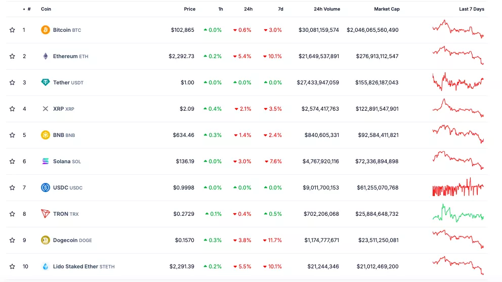 Ethereum опустился к $2280, потеряв за сутки около 5%.