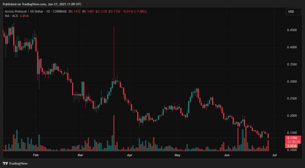 Цена токена Across Protocol (ACX) упала более чем на 10%. Это произошло после обвинений команды в манипулировании ДАО и инсайдерской торговле перед листингом на Binance.