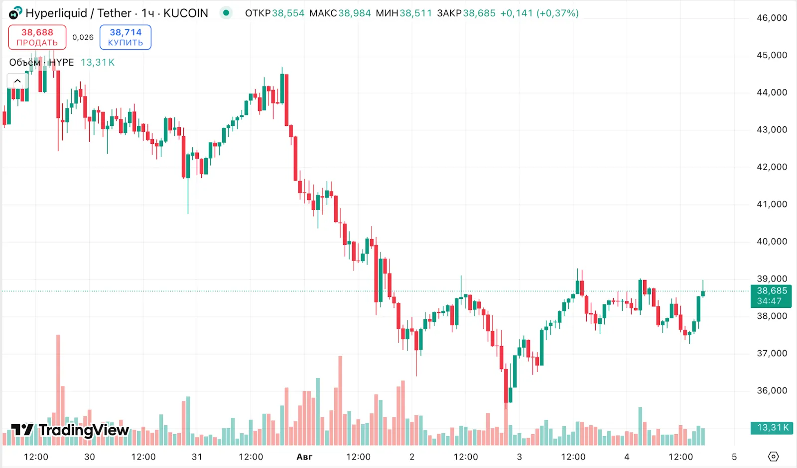 Часовой график HYPE/USDT биржи KuCoin. Источник: TradingView.