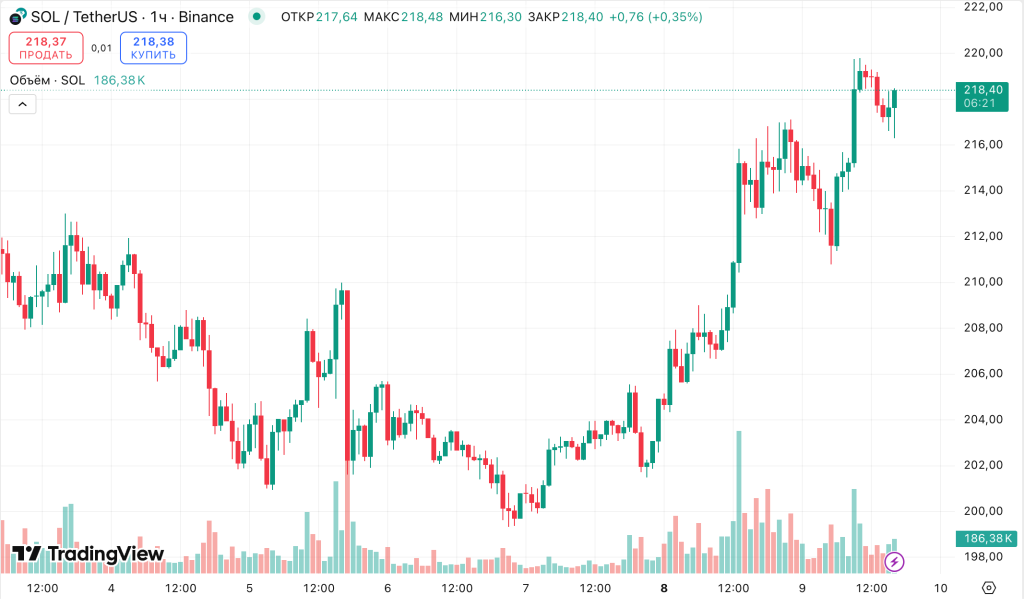 Часовой график SOL/USDT биржи Binance. Источник: TradingView.