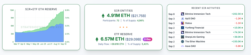 Количество ETH под управлением публичных компаний и ETF. Источник: Strategic ETH Reserve.