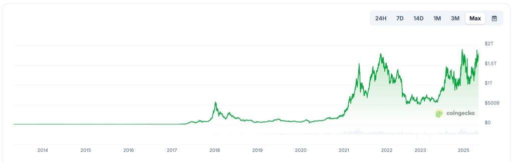 Капитализация сектора альткоинов превысила $1,8 трлн. До обновления исторического максимума по совокупной рыночной стоимости осталось 5,2%.