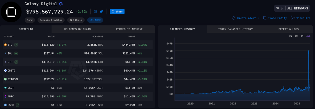 На фоне комментариев генерального директора Galaxy докупила 2,31 млн SOL на сумму $536 млн, согласно Arkham.