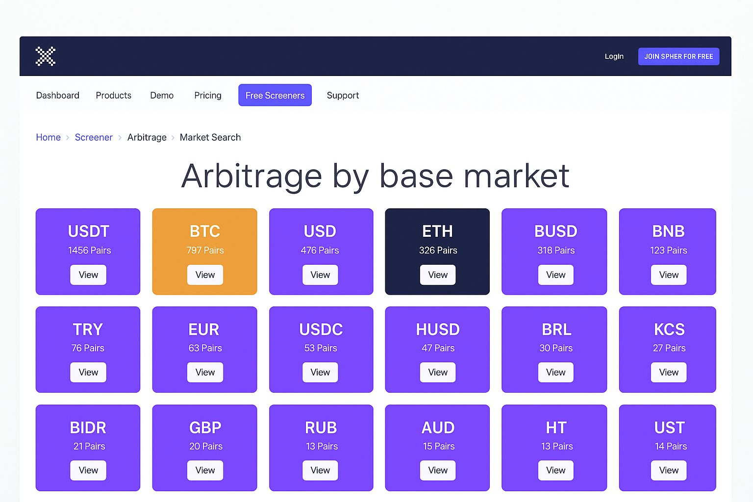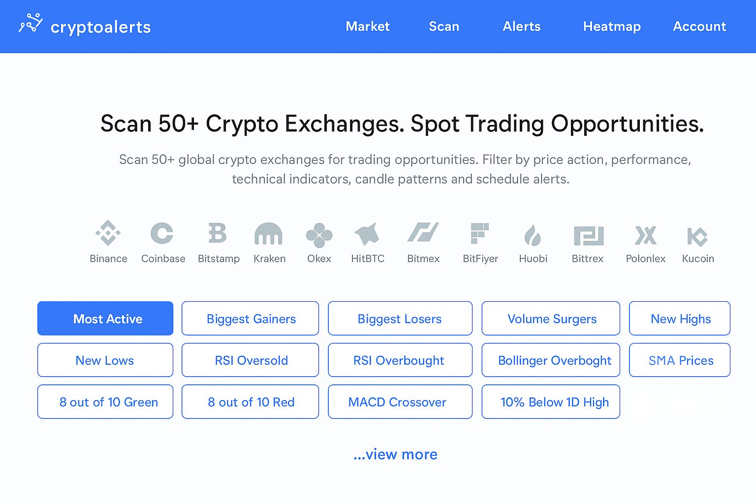 Бесплатный доступ к крипто‑скринеру, подключено около 55 бирж, основной адрес — .