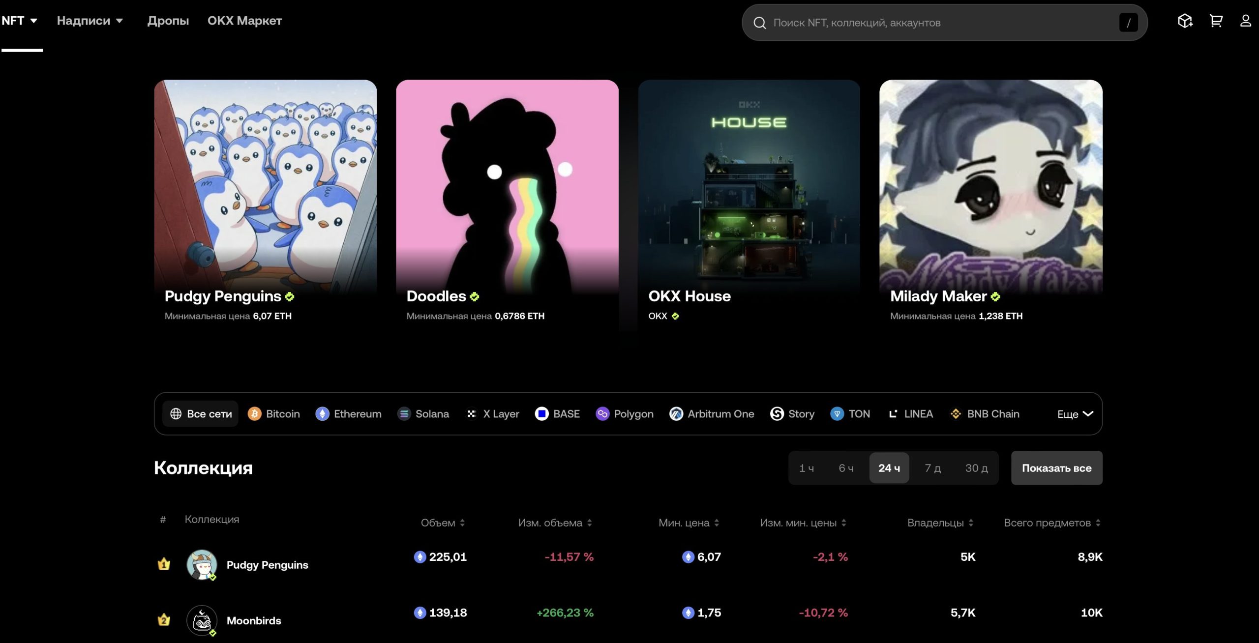 Для коллекционеров предусмотрены фильтры по видам активов и сетям, что ускоряет поиск редкостей.