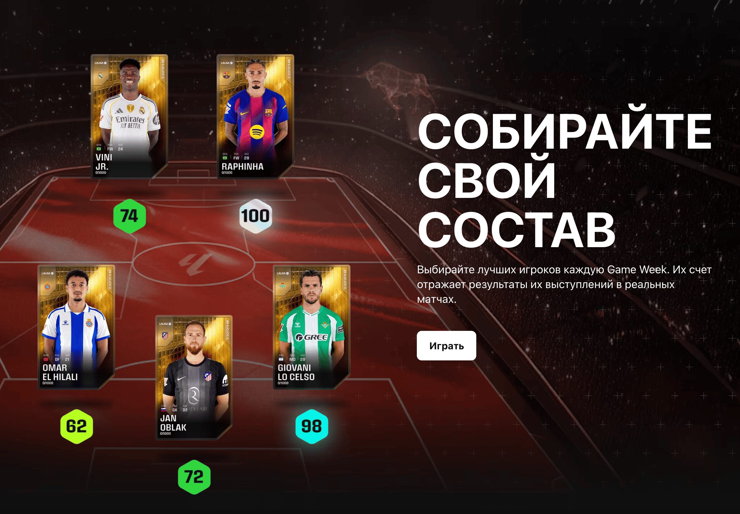 Карты получают опыт каждую неделю, усиливая состав и шансы на победу; это связывает коллекционную и игровую части.