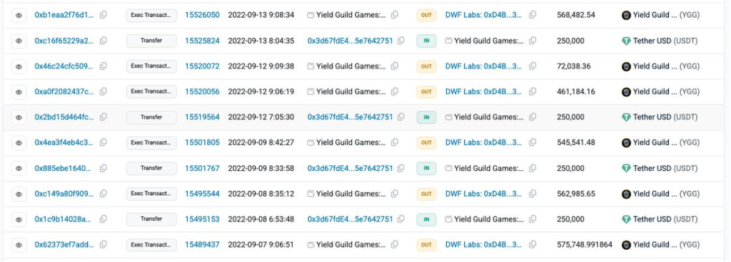 Атакованный кошелек аналитик связал с DWF Labs, поскольку он взаимодействовал с адресом Yield Guild Games, который сотрудничает с маркетмейкером.