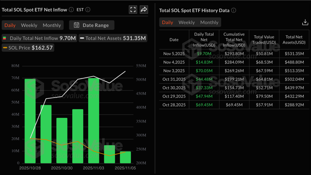 Динамика притоков средств в Solana-ETF. Источник: SoSoValue.
