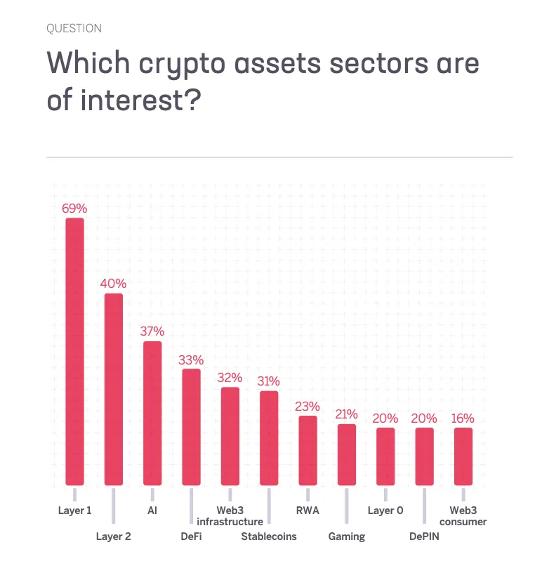 Наиболее популярным остался сектор блокчейнов первого уровня, отметили авторы опроса. Этому способствовало устойчивое положение крупных проектов.