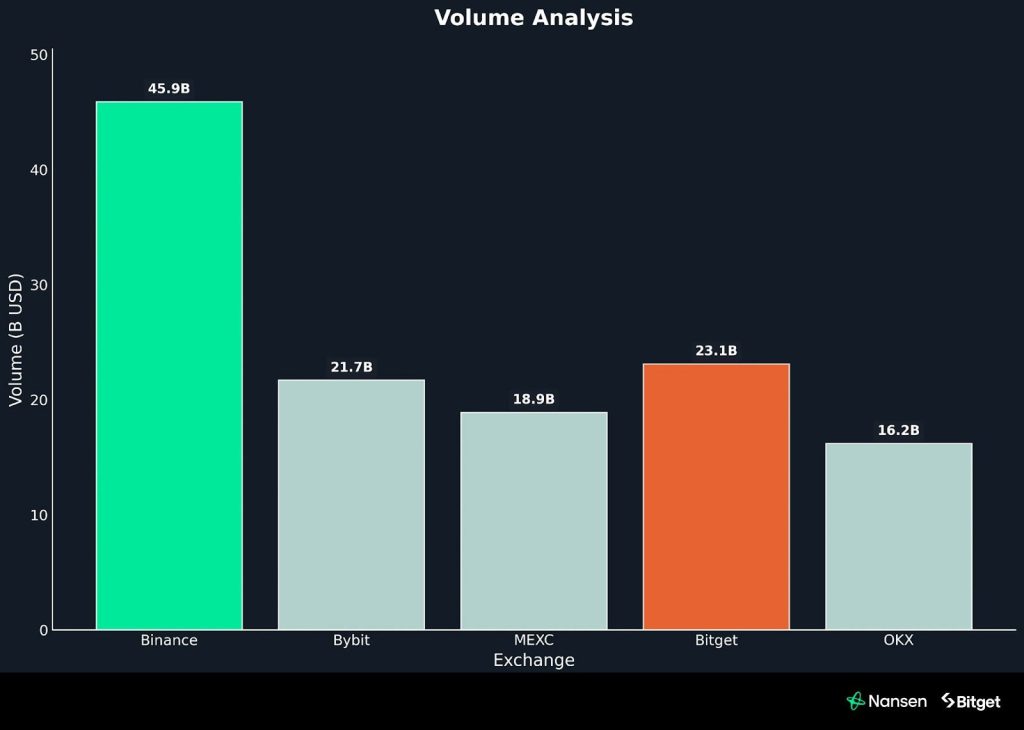 В документе упоминается совместное исследование Bitget и Nansen, где аналитики зафиксировали оборот в $23,1 млрд на платформе.