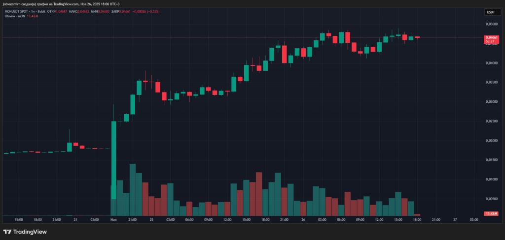 15-минутный график MON/USDT биржи Bybit. Источник: TradingView.