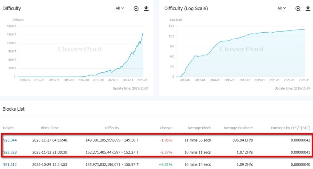 21 ноября котировки биткоина провалились ниже $83 000. Хешпрайс в этот день упал до минимального с начала года уровня — около $34 за PH/s в сутки. Даже после восстановления курса цифрового золота к отметкам выше $90 000 метрика рентабельности майнинга не смогла превысить $40 за PH/s в сутки.