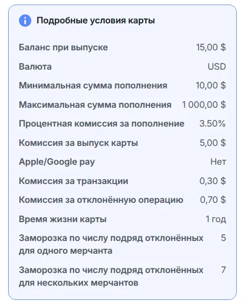 Карта полностью цифровая: реквизиты (номер, CVV, срок) доступны в аккаунте. С ее помощью пользователи могут оплачивать подписки на Netflix, Spotify, рекламные кабинеты Google и Facebook, игры в Steam.