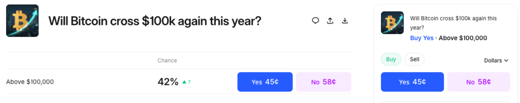 Котировки первой криптовалюты закроют год ниже психологической отметки в $100 000, уверены многие пользователи платформ предсказаний.