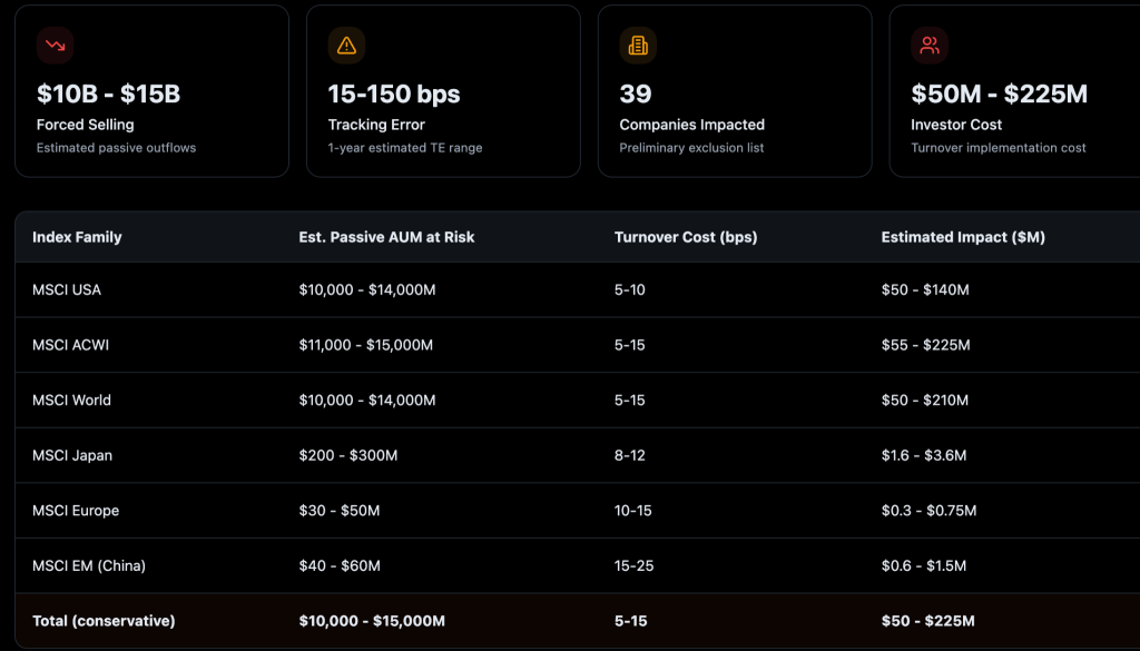 Организация BitcoinForCorporations спрогнозировала отток капитала на сумму до $15 млрд из криптоказначейств, если MSCI решит исключить их из своих индексов.