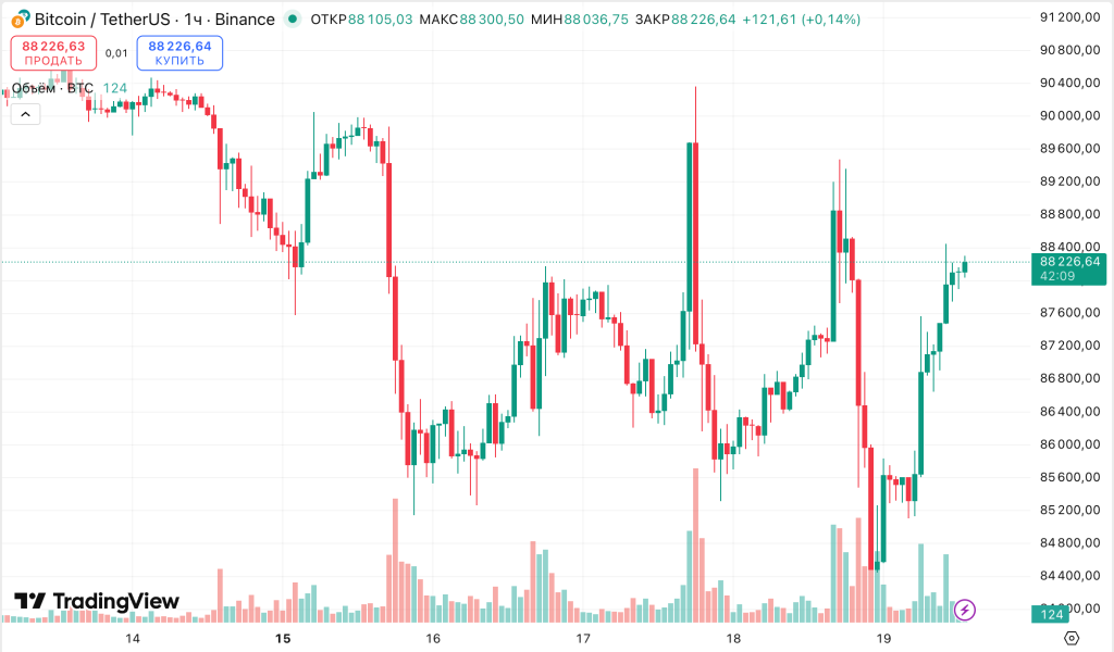 Ван де Поппе подчеркнул, что сейчас ключевой уровень сопротивления находится на отметке $88 500. По его мнению, дальнейшая динамика актива зависит от открытия американской сессии.
