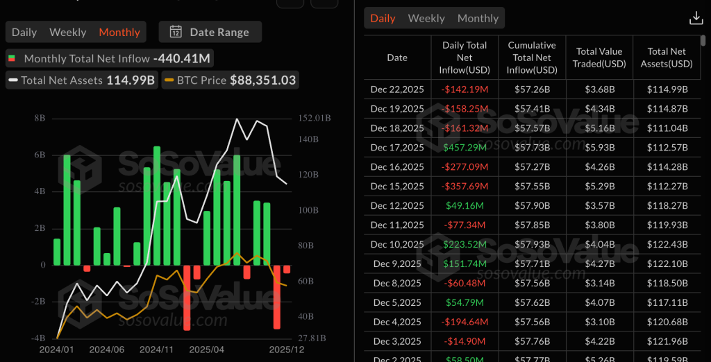 За ноябрь из спотовых биткоин-ETF вывели $3,4 млрд, за неполный декабрь — $440 млн.