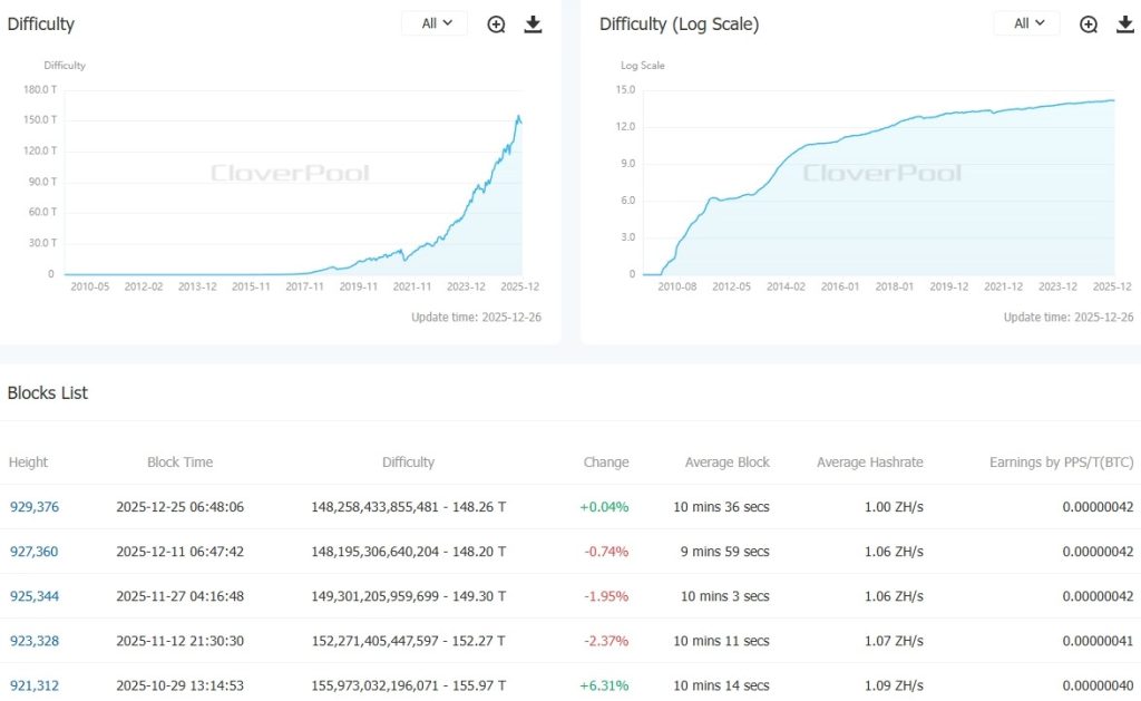 25 декабря в результате очередного перерасчета сложность майнинга первой криптовалюты увеличилась на незначительные 0,04% — до 148,26 Т.