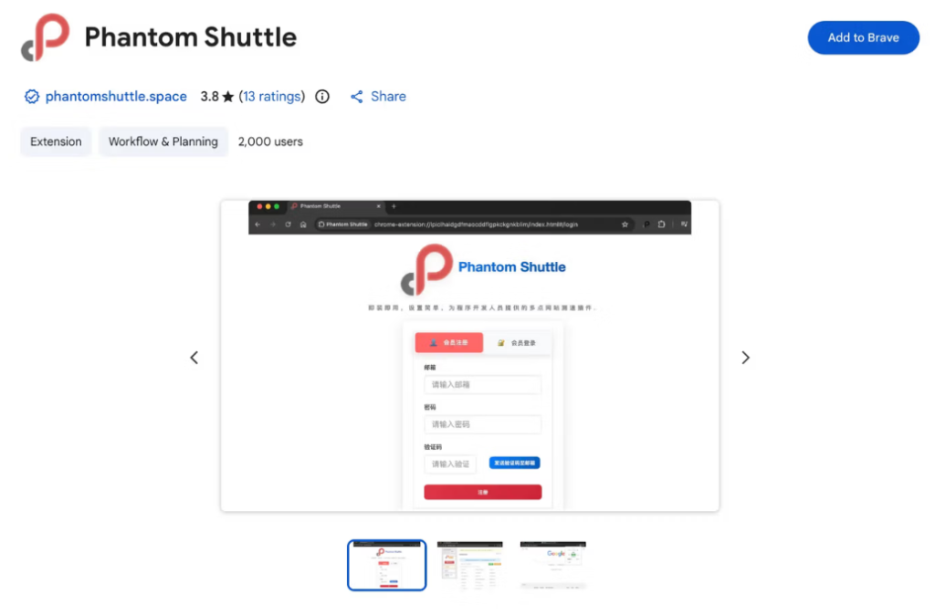 Целевая аудитория Phantom Shuttle — пользователи из Китая, включая специалистов по внешней торговле, которым необходимо тестировать сетевое соединение из различных локаций внутри страны. Оба расширения опубликованы от имени одного и того же разработчика и продвигаются как инструменты для проксирования трафика и проверки скорости сети. Они доступны по подписке стоимостью от $1,4 до $13,5.