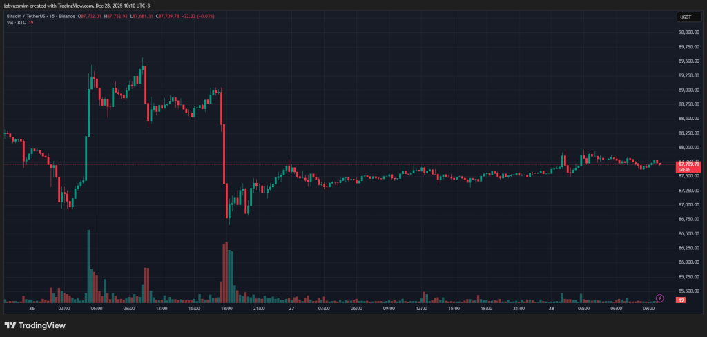 На момент написания цифровое золото торгуется по $87 700, за сутки почти не изменившись в цене.