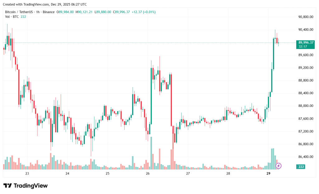 29 декабря котировки первой криптовалюты преодолели рубеж в $90 000. Вслед за флагманом рынка цена Ethereum поднялась выше $3000.