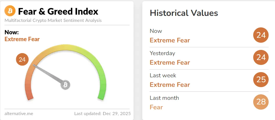 Несмотря на отскок цен, настроения участников рынка остаются подавленными. Популярный индикатор указывает на «экстремальный страх» уже 16 дней.