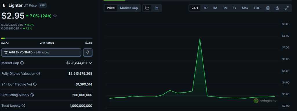 Торги токеном стартовали на отметке $2,73. Курс LIT достигал $7,86, однако скорректировался до $2,95 (на момент написания).