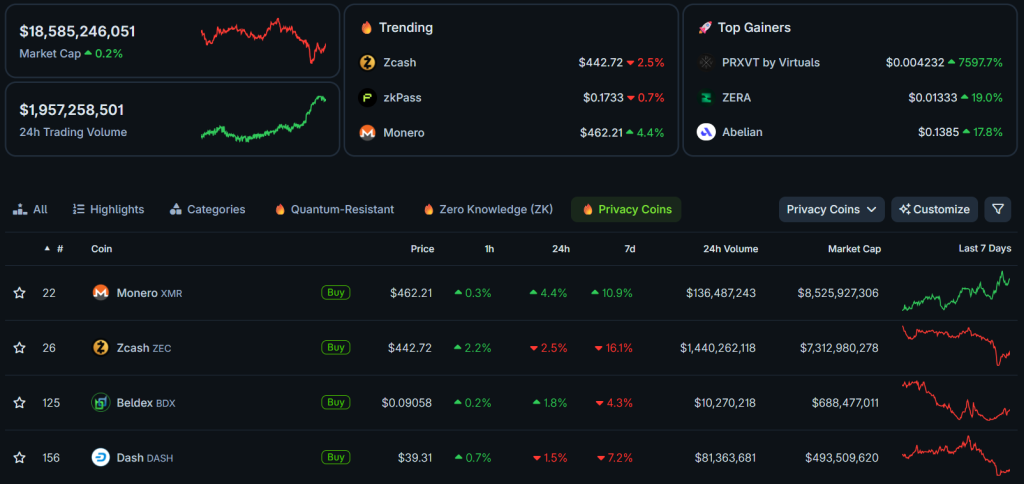 Monero (XMR) вновь возглавила рейтинг приватных криптовалют, подойдя к своему ценовому рекорду. Рост актива наблюдается на фоне кризиса в экосистеме Zcash (ZEC).