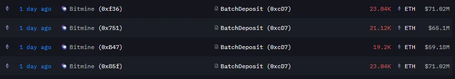 Tom Lee(@fundstrat)'s #Bitmine staked another 109,504 $ETH($340.6M) in the past 2 hours. In total, #Bitmine has now staked 1,190,016 $ETH($3.7B).https://t.co/P684j5YQaG pic.twitter.com/HHUI11YsT7