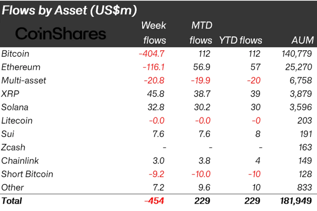Со 2 по 10 декабря криптовалютные инвестиционные продукты зафиксировали отток средств в размере $454 млн. Об этом говорится в отчете CoinShares.