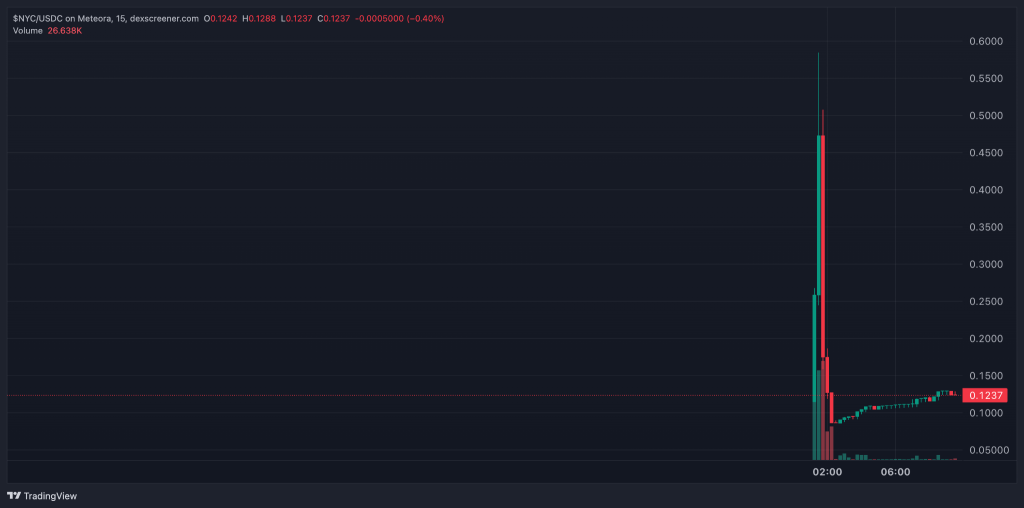 15-минутный график NYC/USDC биржи Meteora. Источник: DEXScreener.