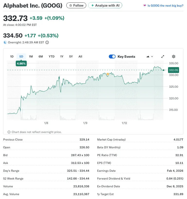 Alphabet четвертой достигла отметки в $4 трлн после Nvidia, Microsoft и Apple.