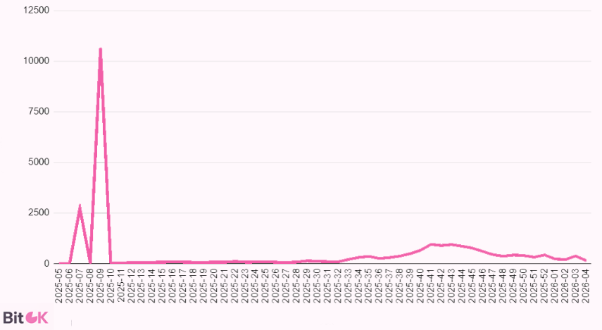 На девятой неделе 2025 года количество новых адресов за неделю превысило 10 000. Этот всплеск совпал по времени с введением санкций ЕС против криптобиржи Garantex. На фоне ограничений часть пользователей могла искать альтернативные каналы для расчетов, однако дальнейшая активность адресов быстро сошла на нет.
