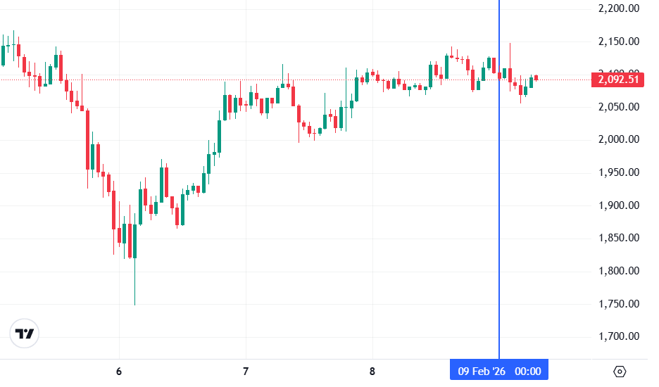 Вторая по капитализации криптовалюта Ethereum также начала день с бокового движения. По состоянию на момент написания обзора, монета торгуется по $2 092 (1 токен в рублях — ₽160 363).