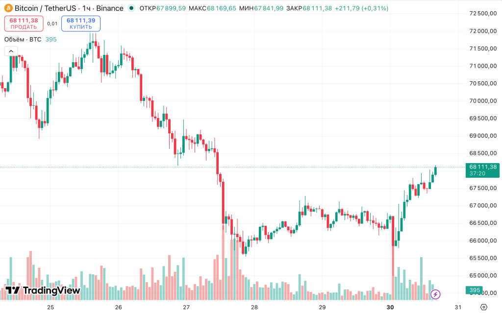 Часовой график BTC/USDT биржи Binance. Источник: TradingView.
