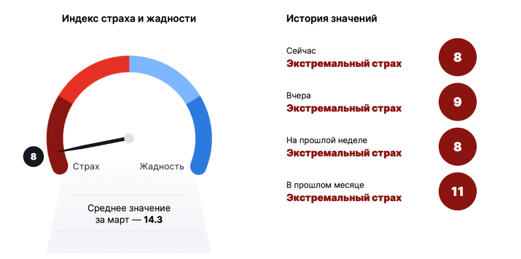 На конец месяца доля биткоина на рынке составила 56,1%, эфира — 10,3%. Криптовалютный индекс страха и жадности указывает на экстремальный страх.