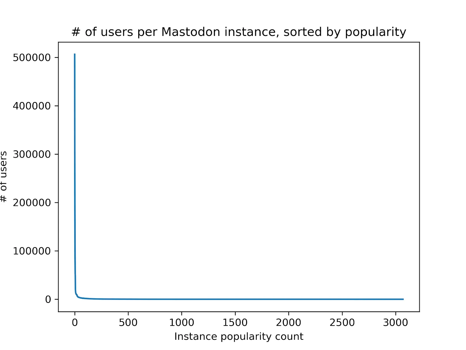 В 2019 году Розенцвайг проанализировала доступные на тот момент данные Mastodon. На каждый из 3070 серверов в среднем приходилось по 640 юзеров. Однако их распределение оказалось неравномерным.