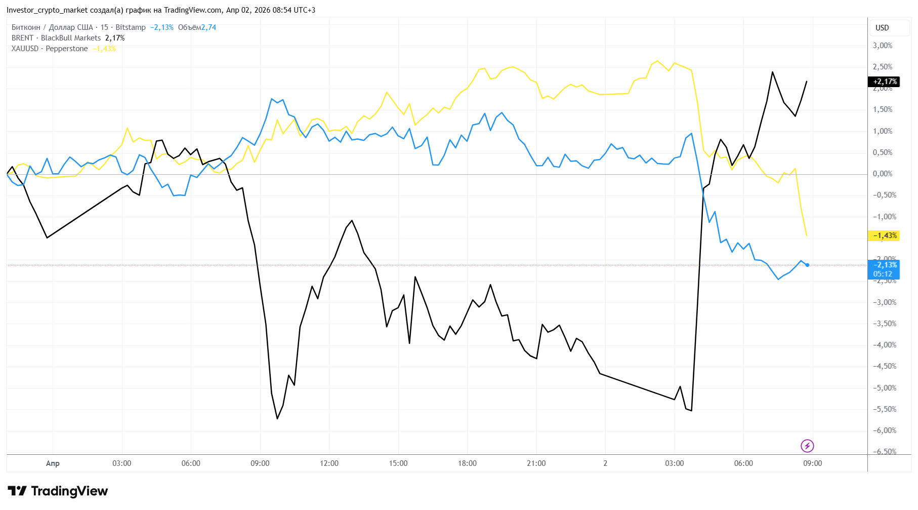 Все ожидали деэскалации, но событие развиваютсяиначе. Баррель Brent превысил $105, нефтяные котировки подскочили выше $102 после угрозы Трампа ударить по иранским электростанциям, золото опустилось ниже $4 700 за унцию, фьючерсы на S&P 500 снизились на 0,54%, Nasdaq — на 0,66%. Доходность долгосрочных казначейских облигаций поднялась до 4,36% и приближается к 4,40%. Биткоин откатился до $67 336 — за сутки просел на 0,9% после краткосрочного роста до $69 135.