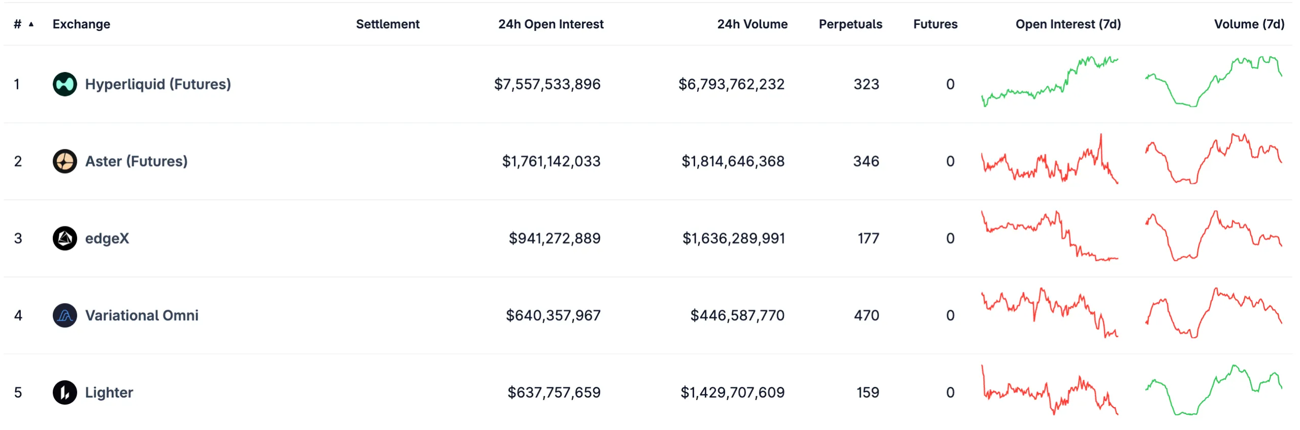 В сегменте лидирует Hyperliquid, суточный оборот которой приближается к $7 млрд.