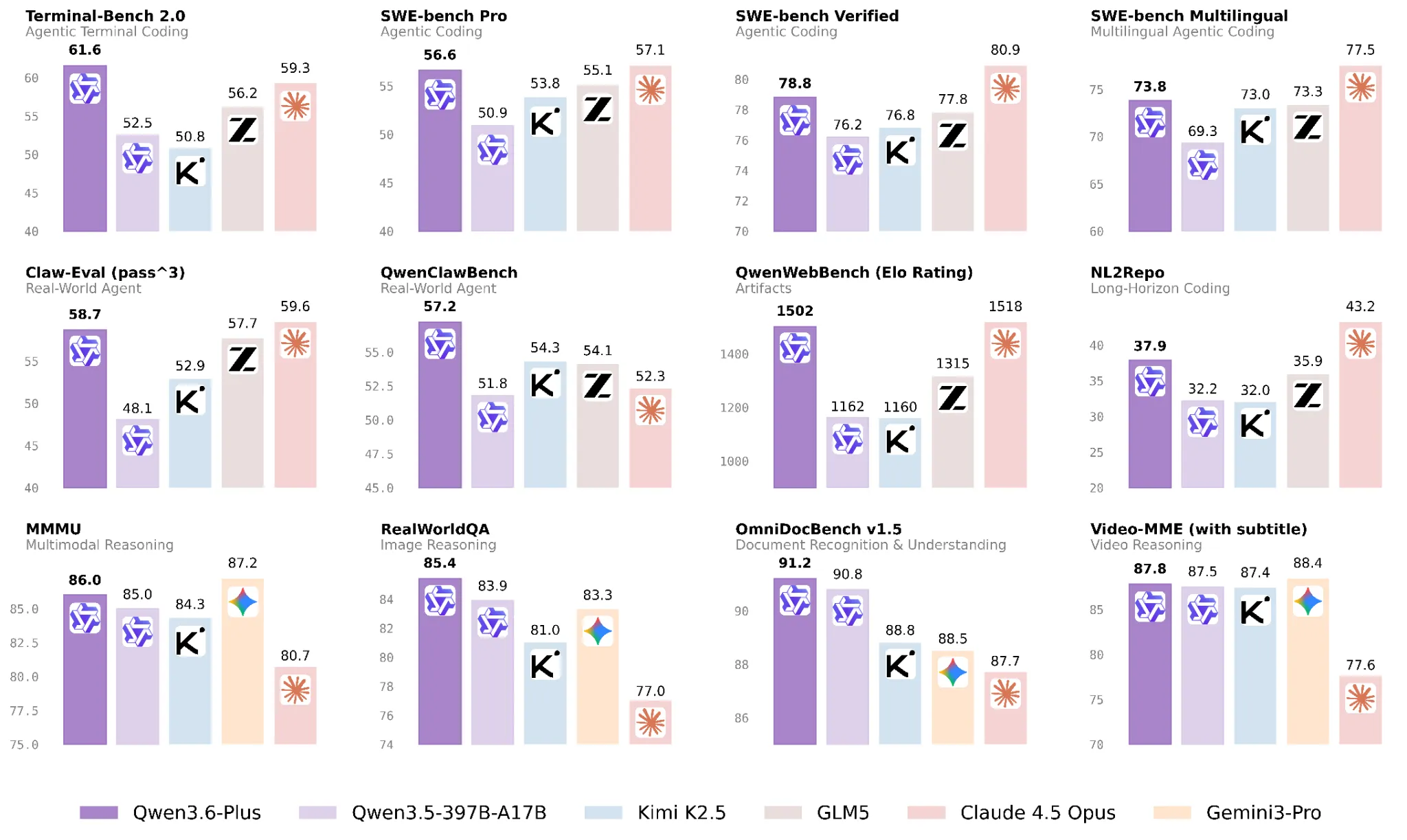 Qwen3.6-Plus объединяет рассуждение, память и исполнение. В тестах на исправление кода модель вплотную приблизилась к лидерам рынка, а в автоматизации задач и сложных терминальных операциях — превзошла конкурентов.