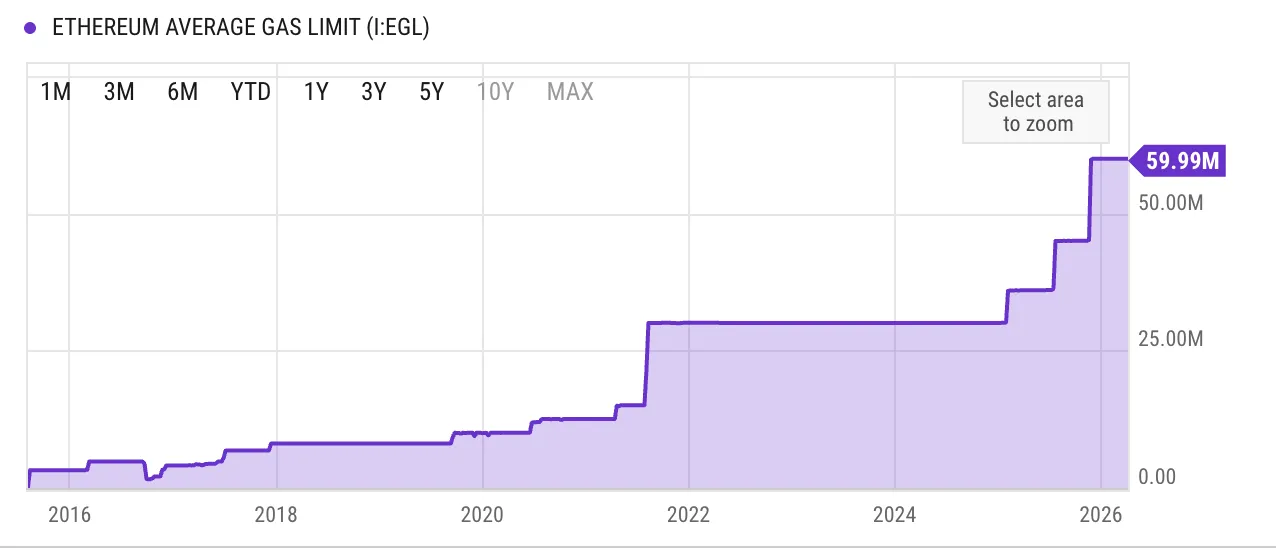 Динамика лимита газа в Ethereum. Источник: YCharts.