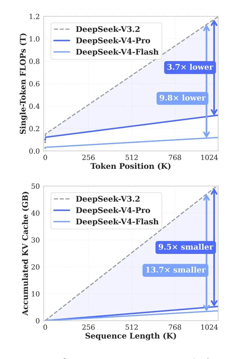 Ключевым отличием V4 стала оптимизация обработки длинных последовательностей. Контекстное окно в 1 млн токенов есть и у других моделей, но его использование обычно сопряжено с высокой стоимостью и задержками.