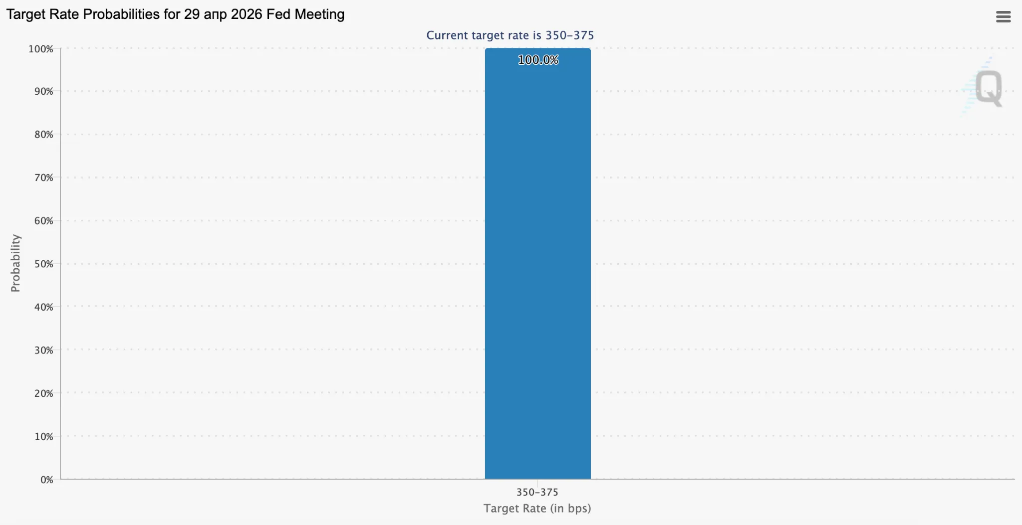 Рынок полностью уверен в сохранении текущего диапазона ключевой ставки ФРС. Источник: CME FedWatch.