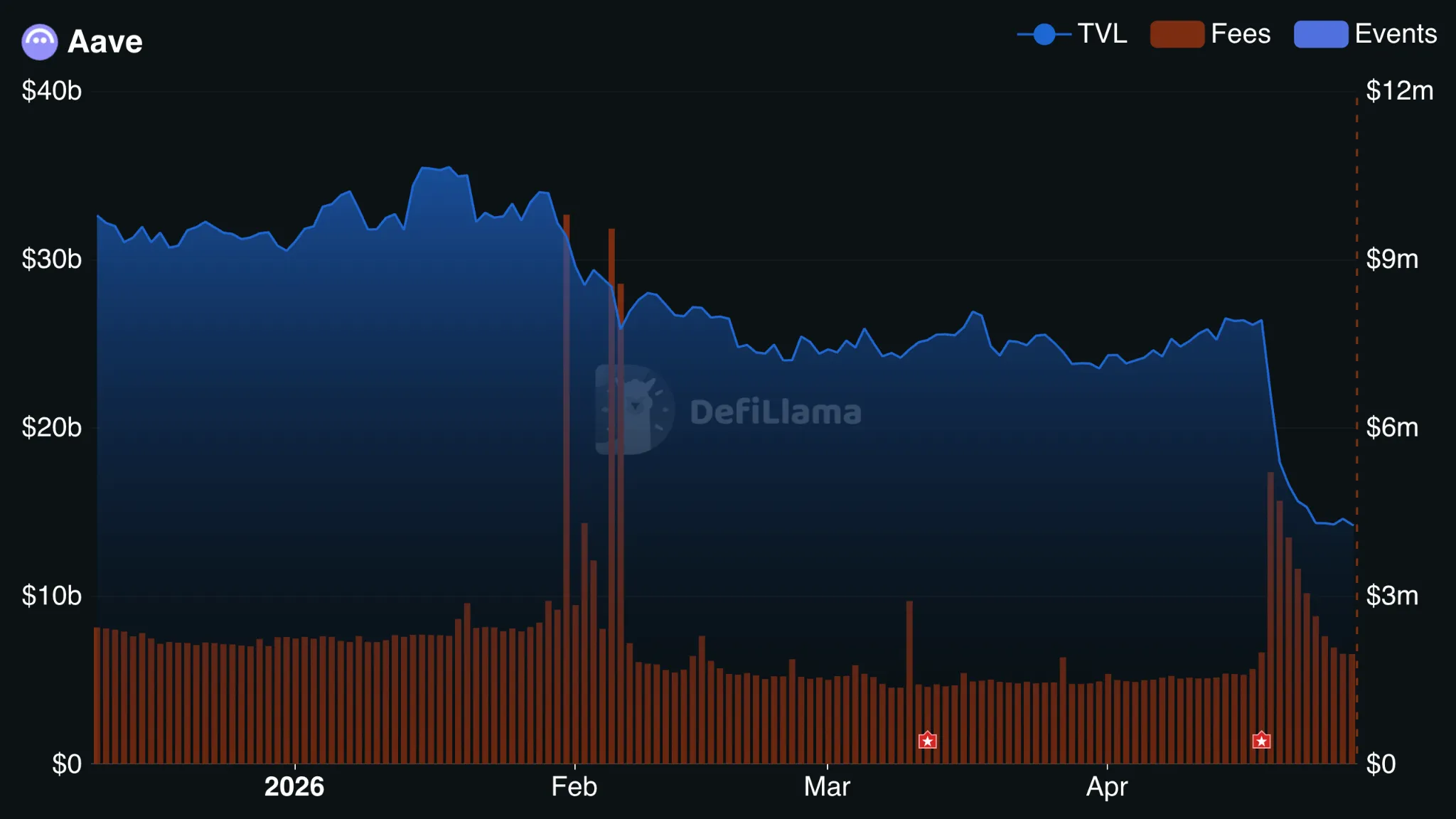 Схожая картина у Aave: TVL протокола держится около $14,1 млрд. За 10 дней метрика сократилась на $12 млрд.