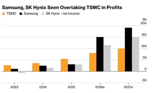 Ожидаемая прибыль Samsung, SK Hynix и TSMC. Источник: Bloomberg.